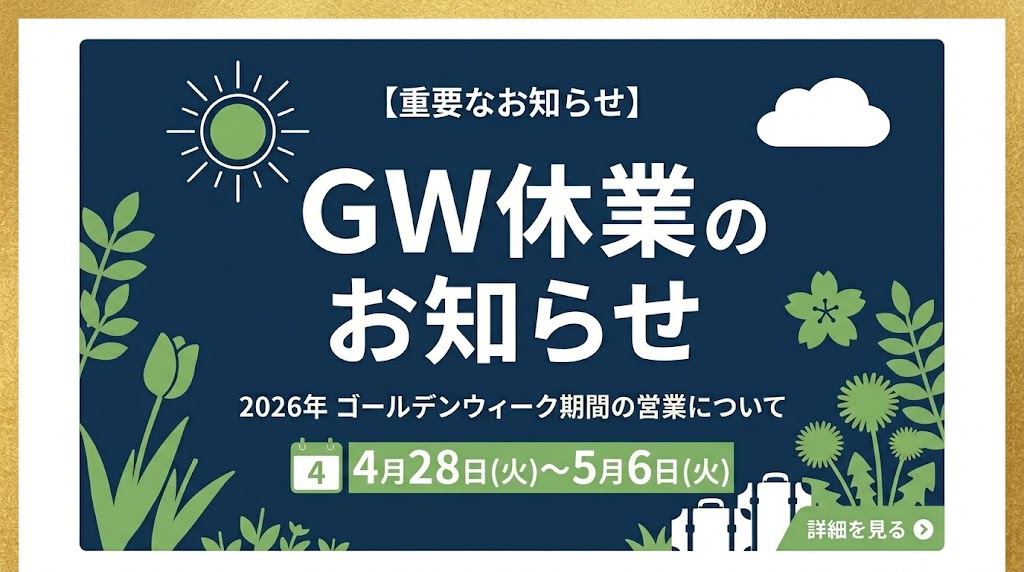 GW休業期間 : 2026年4月28日(火)~2026年5月6日(火)